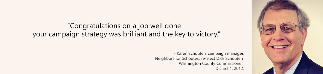 Building the most effective campaign message really means finding the candidate’s voice. We help you find the best way to express your message, and develop the material (website, mailers, door hangers, voters pamphlet statement) to present a consistent and effective message.