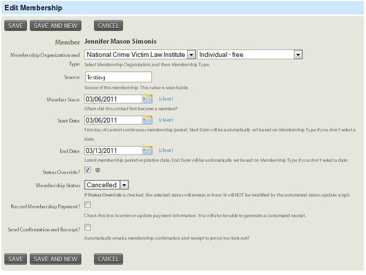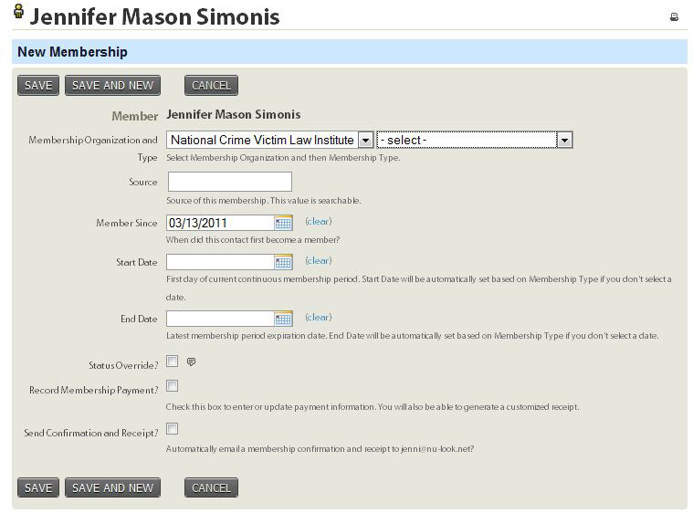 On this page you can choose the membership type, when their membership begins, when it ends, etc. Just fill out the form and then click the "Save" button at the bottom of the screen.