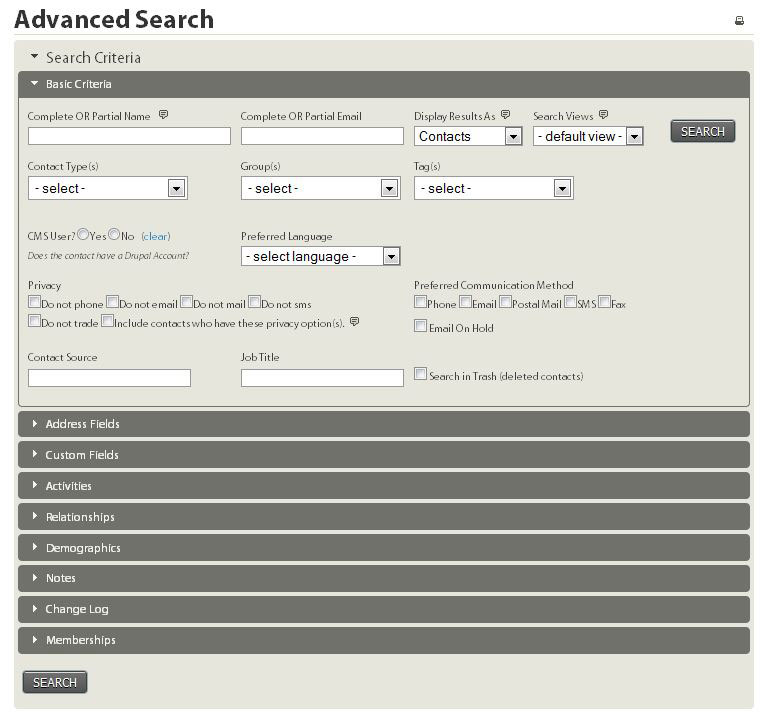 Click the "Search" menu and choose "find contacts". This will give you the simple search from for your database.