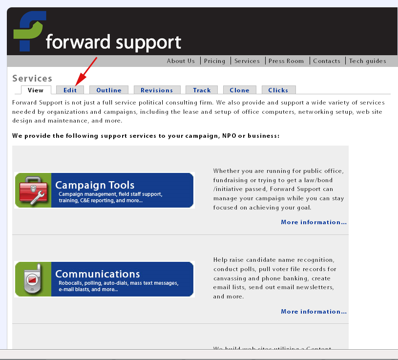 This will give you a listing of all the content on your site. Click on the edit link to the right and it will take you to the edit page for that piece of content.