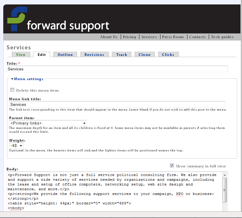 Wait! Don't submit the page yet. We need to add it to the menu. If you accidentally already scrolled down and submitted the page, click the edit tab on the newly created group.
