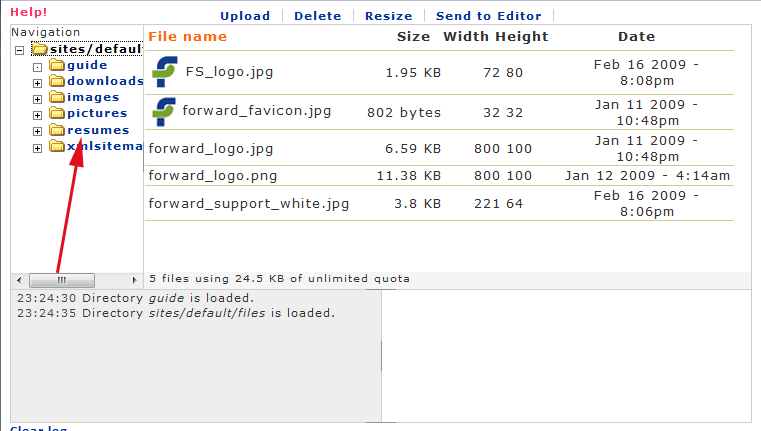 By clicking the "Browse server" button, you'll be connected to the file server which shows all the items you have available in your files directory.